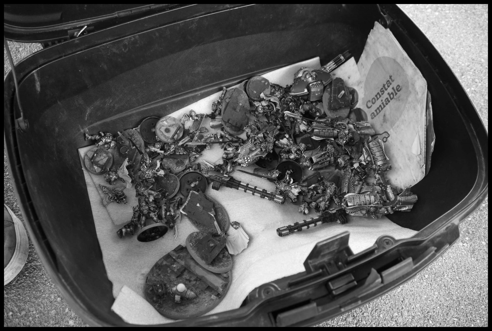 Le Taxidermiste célèbre avant l'heure la sortie de Speed Freeks en se gamellant à moto avec l'armée de Custodes dans le topcase ! Leur 2+ ne leur aura été d'aucune utilité sur la chaussée... RIP.