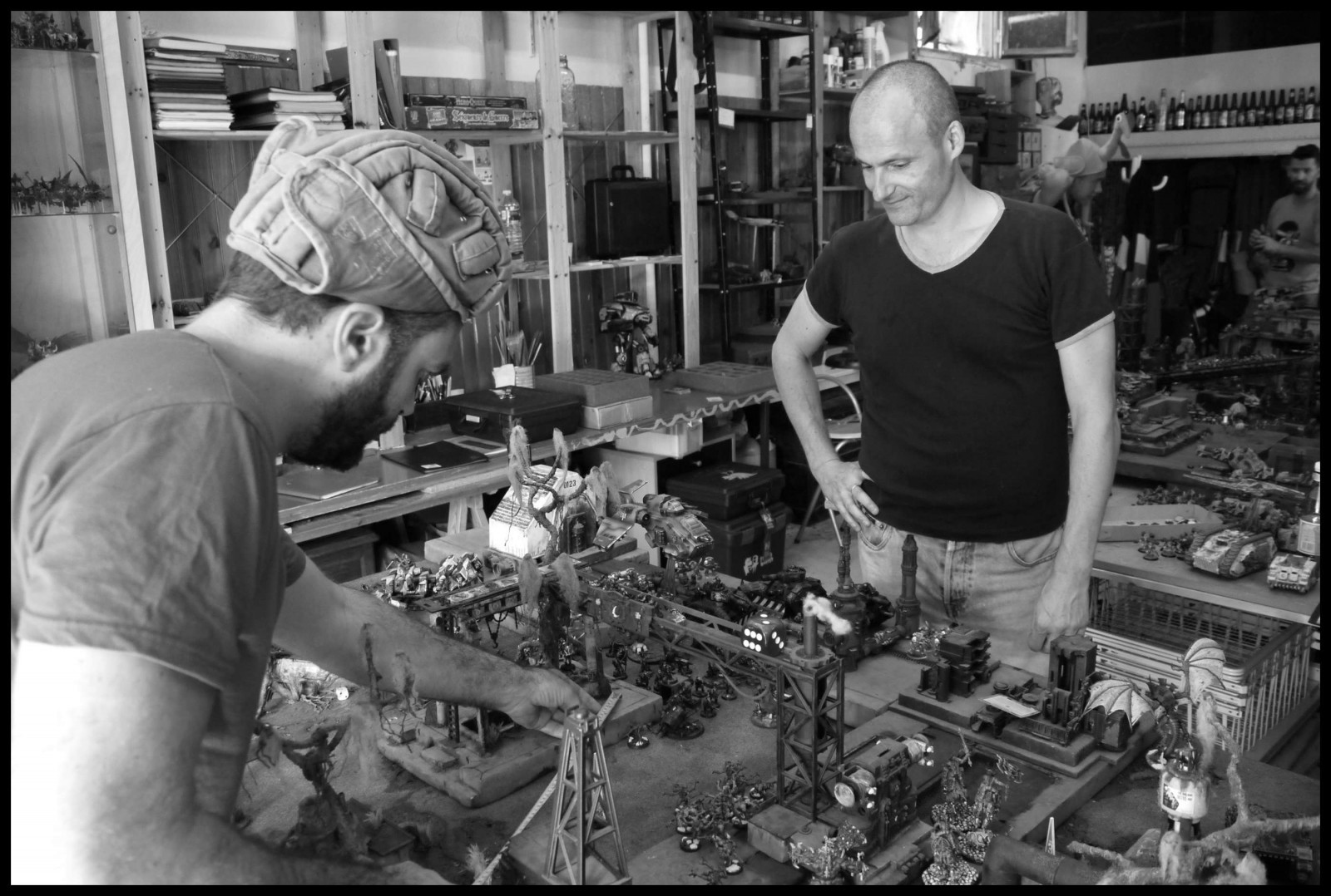 Le professeur Bruthaël explique à Patouze en quoi 40k est un jeu de placement : " Donc là tu vois, je vais te violenter mais tout va se passer avec une extrême douceur, je vais venir te charger mais sans te contacter, de manière à me rapprocher par consolidation du deuxième cordon... "