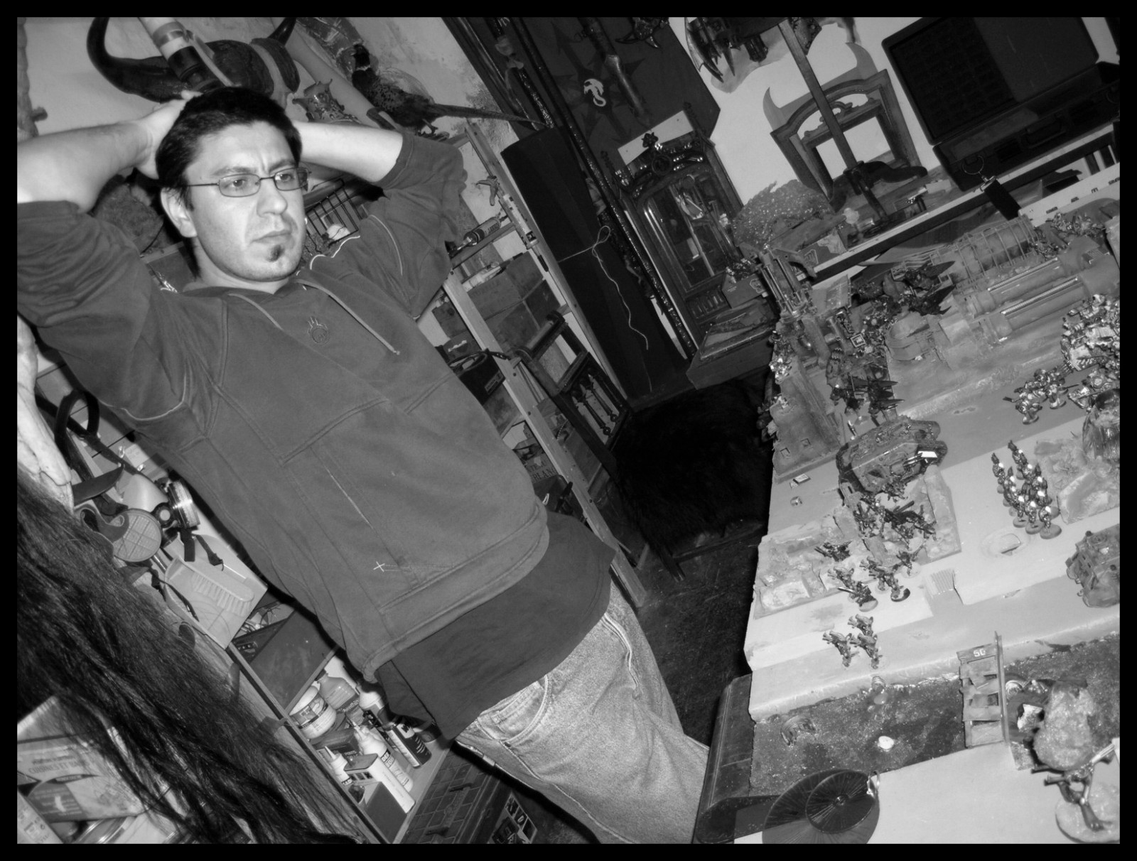 JeeJoo rêvasse. Il lui arrive, parfois, d'imaginer sa vie s'il n'était pas tombé dans le zhobby. A toutes les filles qu'il aurait pu lever, les poèmes qu'il aurait écrit, les voyages improbables au bout du monde... Et puis il s'arrête vite, passque ça va pas faire avancer la peinture.