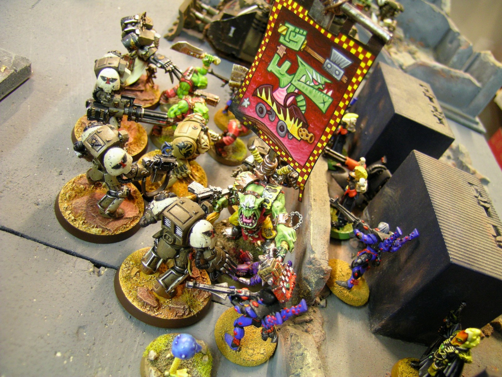 Accueil > La galerie à Bibi > Le close de Mars Eye > Saison 2008 > Dark Angels-Eldars vs Deathguard-Orks > DSCN9595