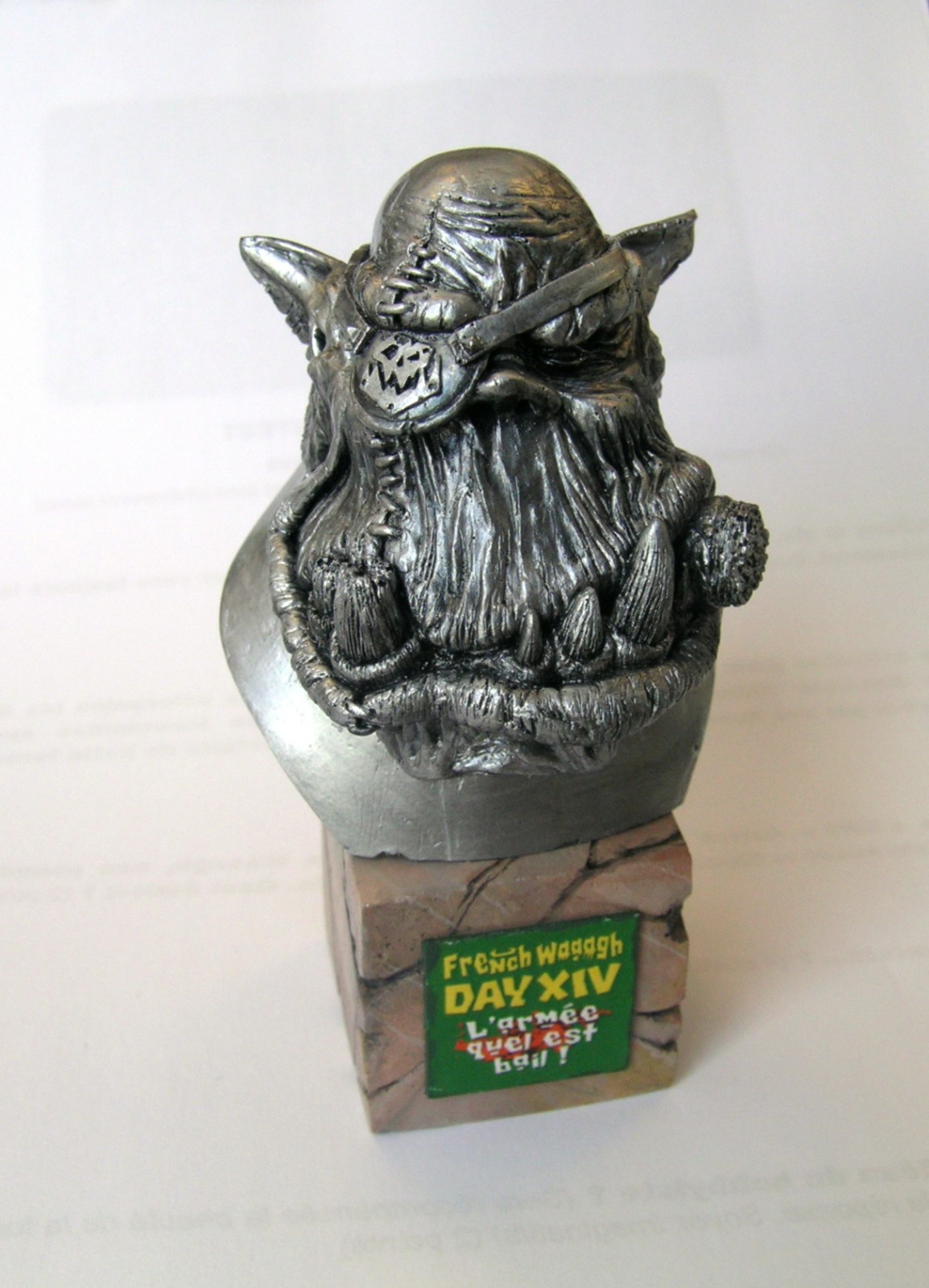 Les trophées de cette édition ont été réalisés par les gagnants du Gretchin du FWD13, à savoir Borgio (Figue), Old Blood (Armée) et Earenciel (Décor).